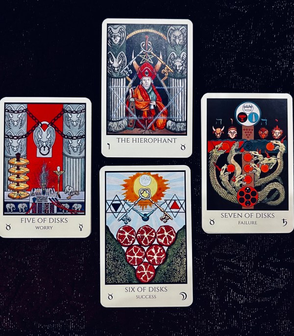 Unified Esoteric Tarot (middle), Lumina Tarot (upper left), Tarot of the Holy Light (upper right), Dreams of Gaia (lower left), and Oak Ash and Thorn (lower right) Patience + Rest: Third Decan 20º-30º May 11th- 21st • Saturn in Taurus• Second House of Wealth and Possessions • Guided by the “Seven of Pentacles” In this... Continue Reading →
