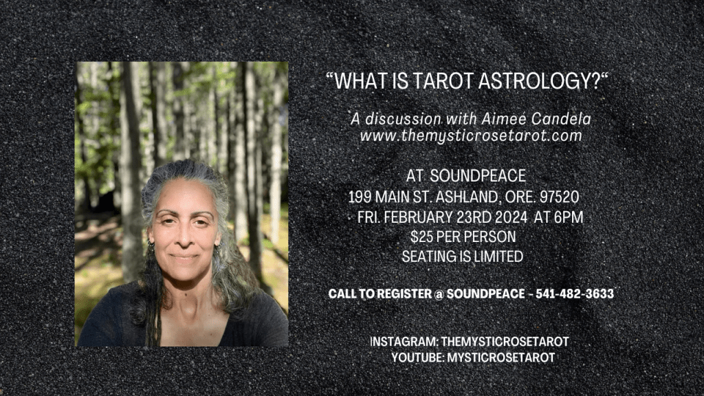 Feel free to bring your own tarot deck for personal reference and a notebook. There are also a myriad of tarot decks to select from at SoundPeace. I will also suggest a few decks to work with that incorporate astrology with the tarot. Below is a brief synopsis of what I am planning to discuss.